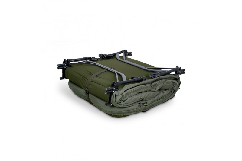 The feet are adjustable via the Grip-Lok™ leg mechanism, allowing for easy and secure height adjustment. The legs are also strengthened double tube legs, which all have large swivel mud feet. The twin folded hinges give the bed a completely flat profile and allow enough room for the sleep system to fold up more compactly. All bolts, washers and fixings are of stainless-steel construction, adding lightness and strength. Lastly, there are two convenient side storage pockets for a phone or car keys.