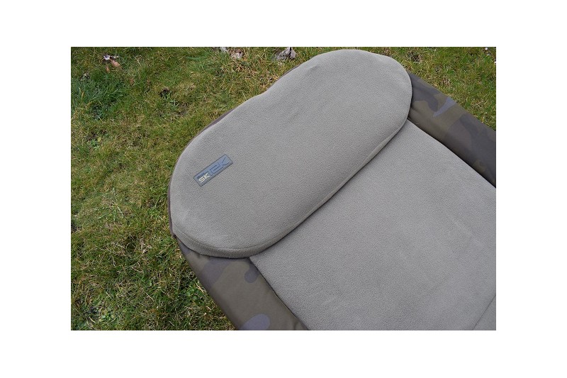The twin folding hinges gives the bed a completely flat profile and allow enough room to fold up with sleeping bag in place. Fleece lined with our smart SK-TEK camo material surround with an extra wide padded pillow section.