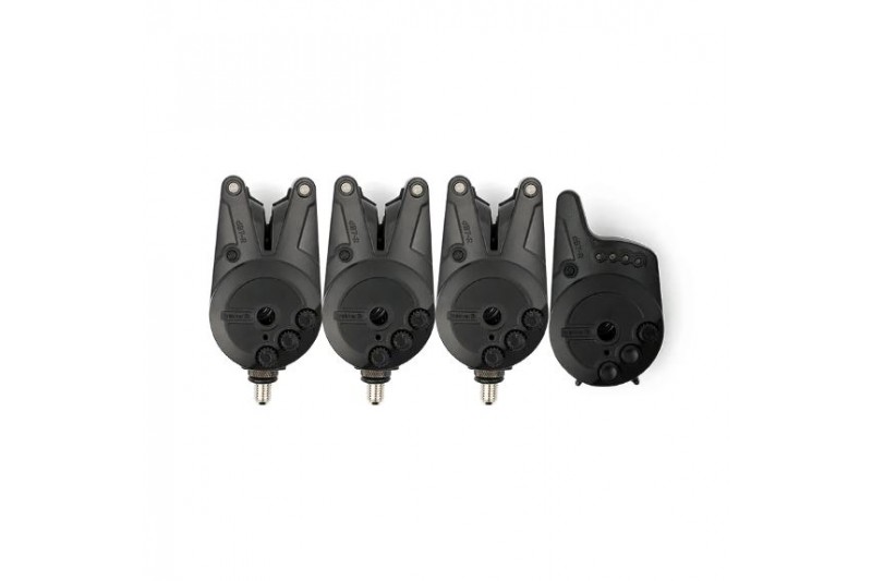 The SRT (Sync-connect Receiver Technology) built into these alarms is designed for long-range and obstacle-link signal optimisation. This advanced technology ensures that you always receive a strong and reliable signal, no matter the terrain or obstacles in your way. The alarms feature a Tru-tone cone speaker for loud frequency delivery as well as a dual-descent tone drop-back differential for enhanced audible indication. The dual super-bright multi-colour LEDs allow you to easily change from red, green, blue, yellow, purple, and white. Peek-view LED positioning further enhances the visual indication from side-on viewing positions. One-touch night light function, solid latching LED forward indication, flashing latching LED drop-back indication, dedicated indexed volume control wheel (8 volume settings including silent), indexed tone control wheel (8 tone settings), indexed sensitivity control wheel (8 sensitivity settings), power out socket (2.5mm) for use with illuminated indicators, and low battery warning. Rod-friendly rubber inlay grips, a rigid 3/8" stainless steel thread and a blackout locking nut. They require a single PP3-9V battery, making them easy to use and maintain. The single 9V power source ensures longer life and better signal strength.