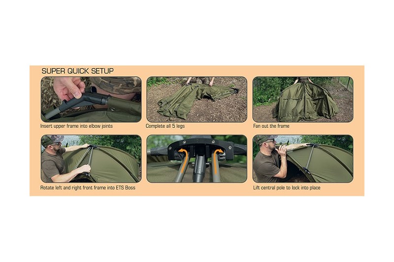 The Fox FRONTIER X Bivvy is part of a brand-new range of Fox bivvies that are set to take the fishing world by storm! The Frontier bivvies have been painstakingly developed over the last 5 years and no stone has been left unturned in producing the anglers ultimate bivvy. The Frontier X unique patent pending Easy Tension System (ETS) Boss Frontier offers a super quick setup and pack down whilst the improved shape of the aluminium frame ensures you have more usable space and headroom than ever before from bivvies of this style. Utilising the ever reliable Ven-Tec fabric and styled in Khaki with Camo mesh vents these bivvies are incredibly reliable and really do look the part. See below for all features and specifications.