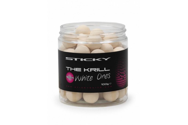 Sticky Baits Krill White Ones Pop-Ups as the name suggests, The Krill “White Ones” are striking white pop-ups that offer you a great visual edge when fished as a single or over large beds of bait.