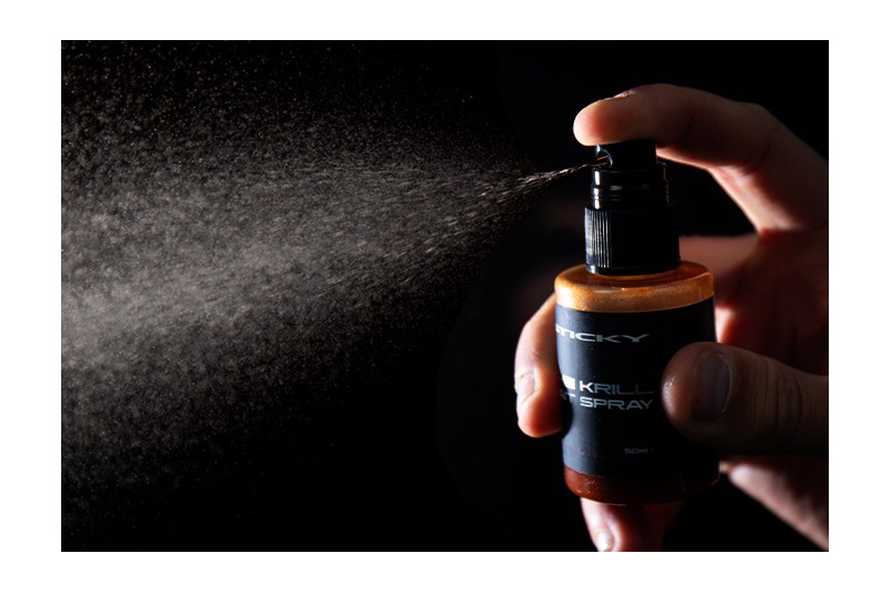 The Sticky Baits The Krill Bait Spray has been designed as an alternative attractor to supplement the liquids with the Krill range. Although we swear by our Liquid Food and Glug ranges, they aren’t ideal for soaking hookbaits for prolonged periods of time, as their dense nature can dramatically affect the buoyancy of a pop-up or wafter and render your rig mechanics useless.