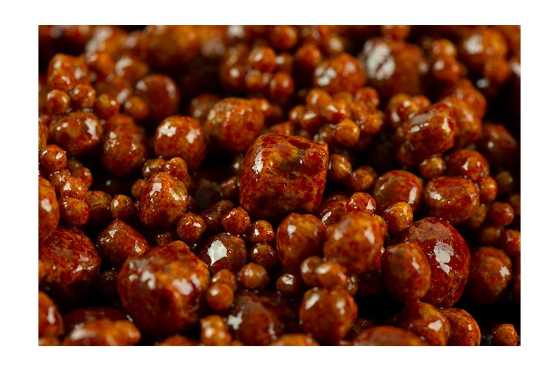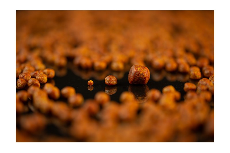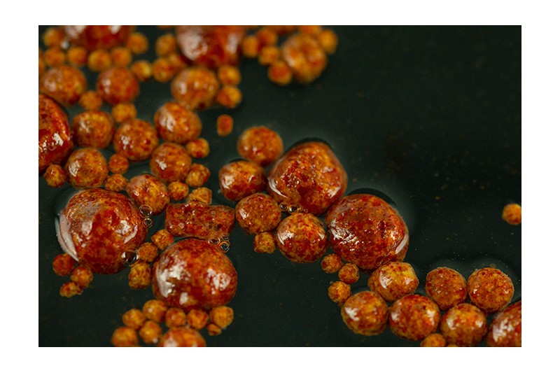 Using high-protein pellets as a base, we coat each individual morsel with a tantalising mix of soluble attractors, tiny food particles and fish oils. This two-staged coating process works as soon as you introduce your feed. The first coating releases potent fragments of bait carrying food signals across the surface layers, while the second works its way through the water column, hopefully drawing carp up to feed more confidently.