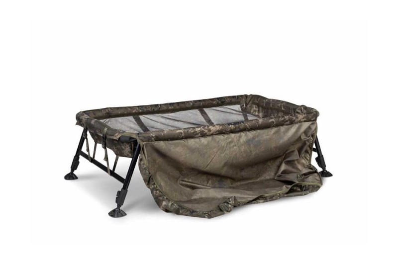 The Nash Hi-Protect Carp Cradle Camo instantly allow you to choose whether they retain water or not, either for personal preference or to keep you within fishery rules. The free draining mesh base features an additional Velcro secured 210D nylon water retention panel, added or removed in seconds.
