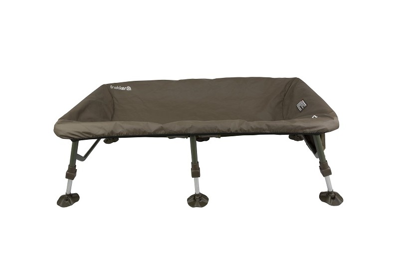Our Trakker Sanctuary Cradle XL provide off-the-ground safety and protection. They have been designed to make handling, unhooking and photographing the largest of fish as safe and as simple as possible. The dimensions of the cradles, along with their lowest height settings, have been optimised with both the fish and angler in mind. The cradles feature our unique multi-functional solid internal cover made from rugged, fish-friendly, easy-clean 420D PVC. This can be used to lay the fish on and retain water inside the cradle to keep the fish wet at all times. It can also be removed and placed over the top of a fish, and used as a temporary cover to calm down lively fish. The internal cover is fully removable from the cradle, which means easy cleaning and drying to prevent the spread of aquatic disease. The base of the cradle is made completely from our fast-drain mesh fabric, from which our Sanctuary Retention Slings are made. This allows water to pass through the mesh with ease and drain away. Six fully height-adjustable legs and large rotating mud feet keep the cradles stable and level when adjusted, allowing them to suit any terrain, while both outer sets of legs feature locking pins for added security. A large storage pocket for scales and carp-care essentials is attached at one end, and this pocket holds the cradle together when folded in its pack-down form via a clip; this keeps the cradle compact and easy to store. A rubber Carp Care Guide is present on the frame and solid internal cover, and both come supplied with a zipped carrybag with shoulder strap and handles.