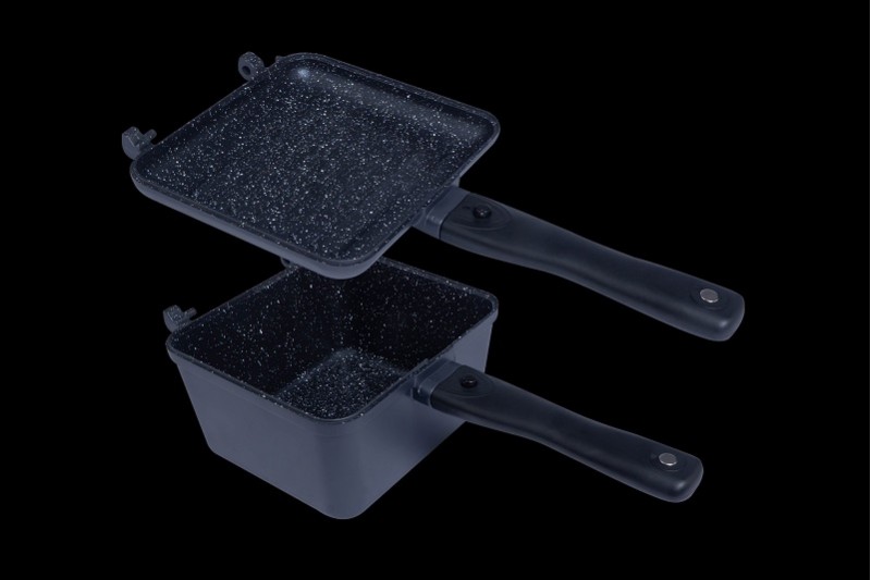 The Ridgemonkey Connect Deep Pan & Griddle Granite Edition has a granite-style coating with improved non-stick properties, can be used on all traditional stoves and direct heat sources (not suitable for use on induction hobs).