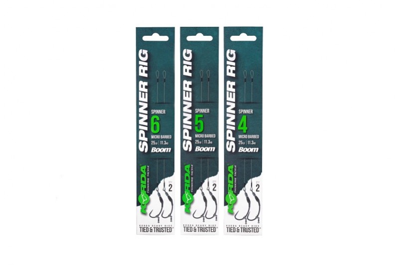 The Ready Tied Spinner Rig has a 5.5” boom and now comes with three patterns of hook; Krank, Kurv and the latest version in the Korda stable, the Spinner Hook. All come in barbed or barbless versions.