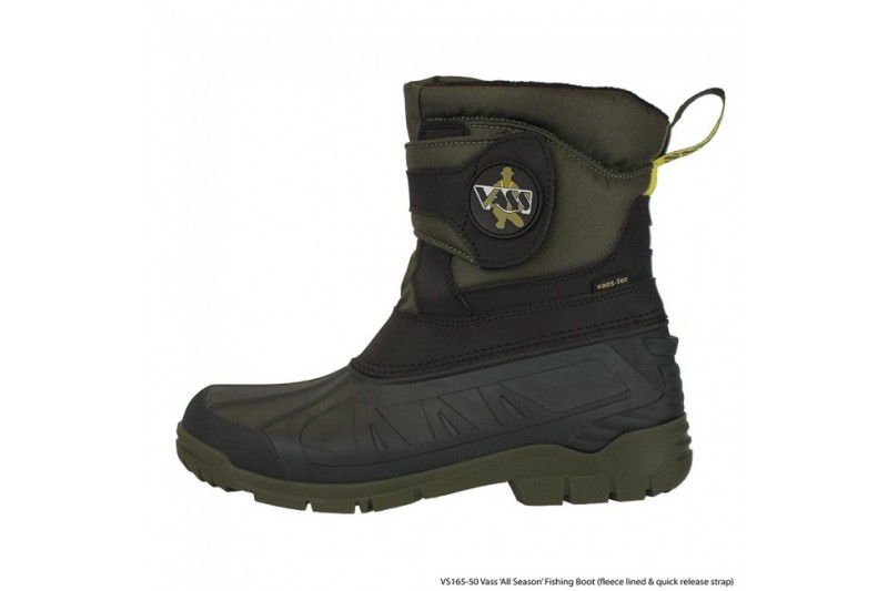Following the huge success of the Vass All Season Fishing Boot (code: VS150-50) Fleece Lined Boot. Vass have extensively updated the design to improve the fit and features. The new Vass ‘All Season’ Boot features a large quick release fastening Strap, waterproof to halfway with a breathable textile upper which is shower resistant. This high-quality boot is Lightweight, flexible and very quick to put on & take off. Benefits also include ‘No Metal components, No Rust’ therefore no more broken laces caused by rusty lace eyelets!