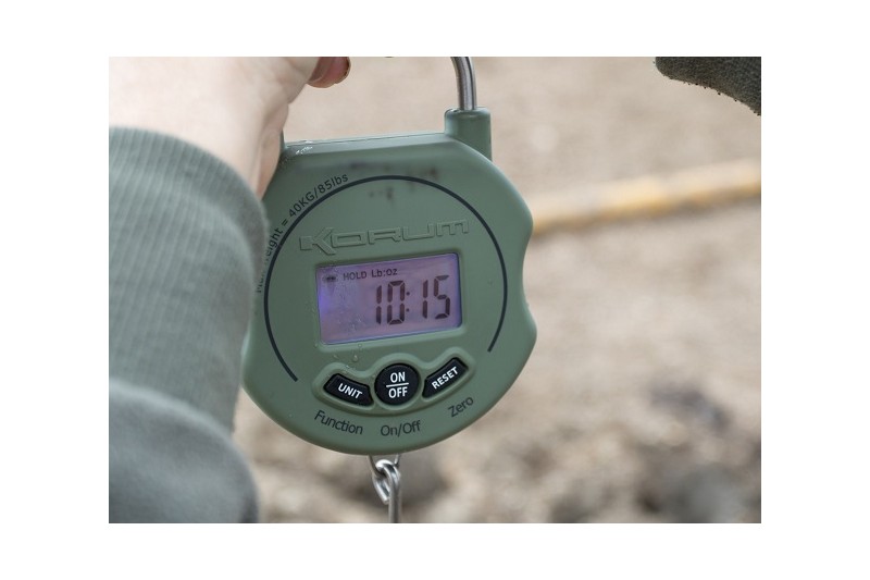 The Korum Scales are ergonomically designed, soft touch case with backlit digital display. Stainless steel weigh hook and hanging bar. Weighs up to 85lb/40kg. Weighs in KG, LB/OZ, ST, and also displays the air temperature. Designed to not only fit neatly in your hand but also in your tackle bag or seatbox.