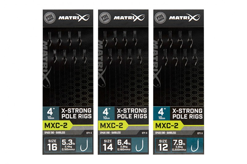 The Matrix MXC-2 Pole Rigs are designed for using as pole hook lengths on commercial fisheries. Which are constructed using MXC-2 ultra-sharp PTFE coated hooks and Power Micron monofilament. Accurately tied to 4 inches (10cm) which can be securely stored in Matrix hooklengths cases...