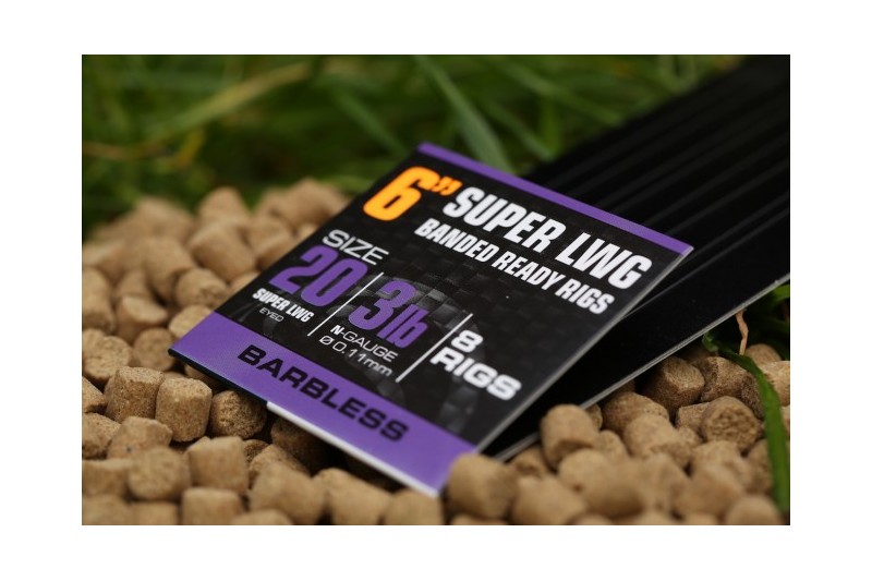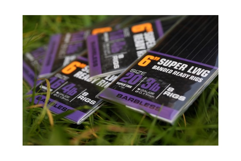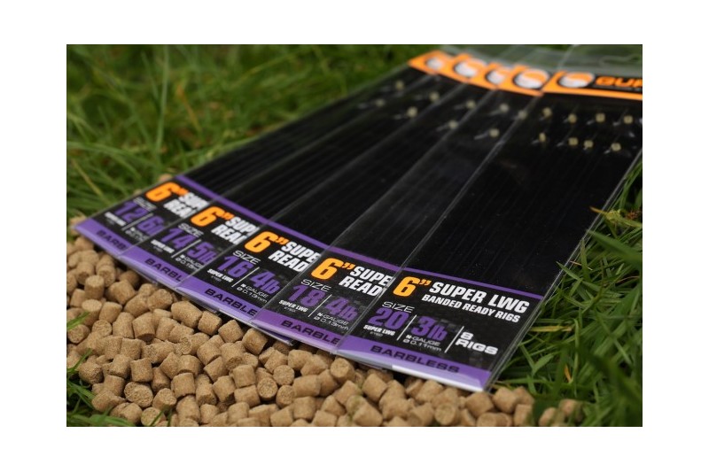 Guru Super LWG Banded Ready Rigs incorporates a banded hair rig tied with a knotless knot, featuring a neat Guru Micro Band, which can be used for various baits. The small band is very discrete when bait is placed in it, great for fooling wary commercial fish.