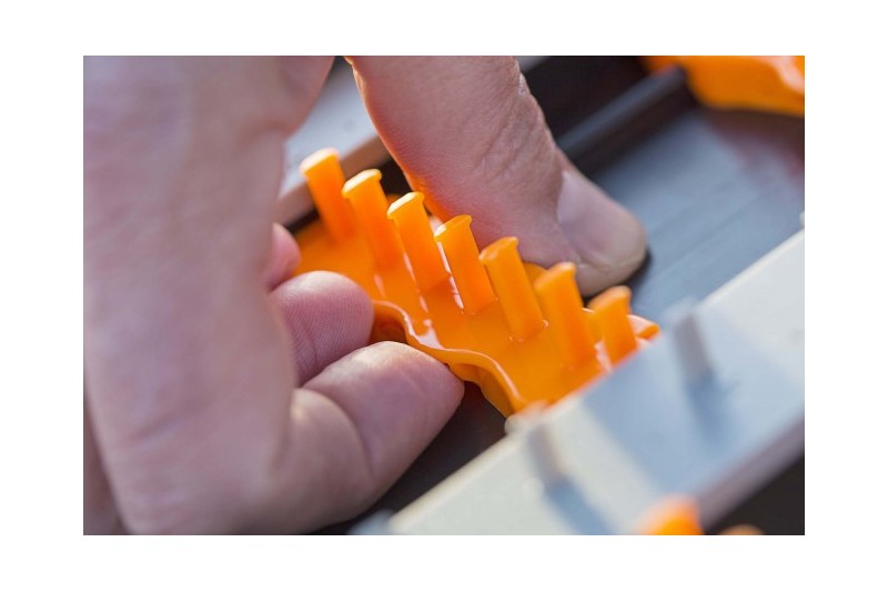 For easy adjustment of the pins, an unlocking tool is provided to pop off the adjustable length pins.