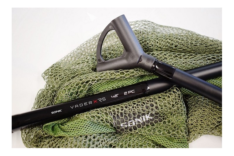 The Sonik VADERX RS LANDING NET 2 PCE 42" are manufactured with the same careful attention to detail as the rods. They feature slim, lightweight and strong handles in 1PC or 2PC variations. Super stiff net arms with curved end protectors are matched to a medium depth green mesh; this can be tucked into the spreader block retainer for easy manoeuvrability and quick release. With a discrete silk black finish these nets make the perfect match for our rods.