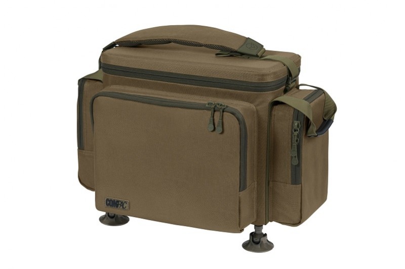 The Korda Compac Framed Carryall Large externally features five pockets, four of which are designed to complement the Compac 100, 110, 125, and 140 EVA Pouches.