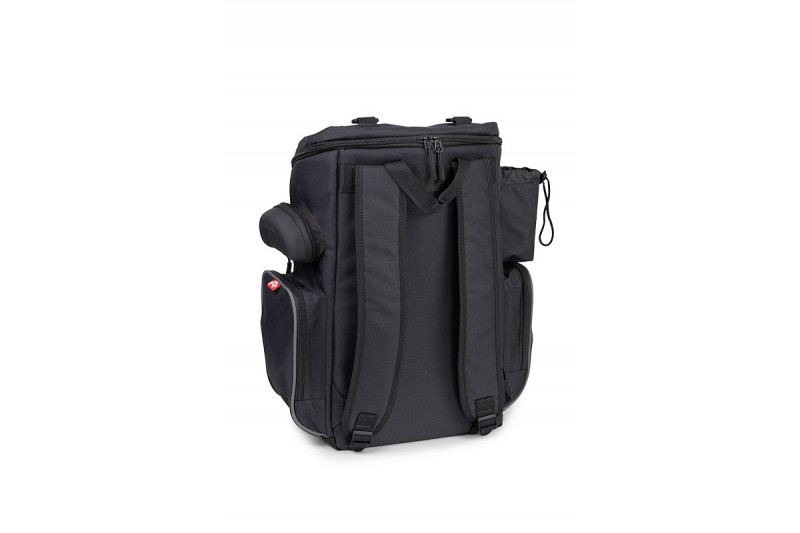 The Fox Rage Rucksack is a super functional, large capacity rucksack with a main compartment loaded with 4 medium shallow boxes. Also has extra compartments on top, sides and rear of rucksack for additional storage.
