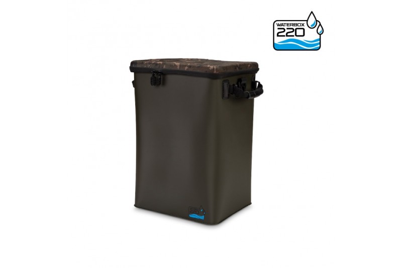 The Nash Waterbox 220 Camo is a upright high volume storage comes from the 220 model, perfect for clothing sleeping bags or even bulk storage of floaters, pellets and boilies...