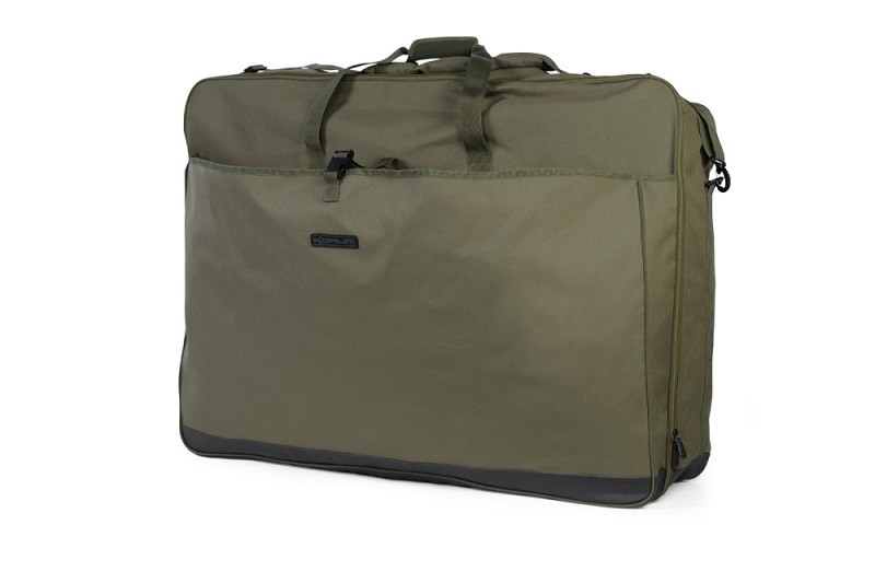 The Korum XL Chair And Net Bag is designed to transport chair and nets in an easy to manage bag. The chairs fit sideways increasing ground clearance and making them easier to carry. Front pocket is large enough for landing nets, keepnets and unhooking mats...