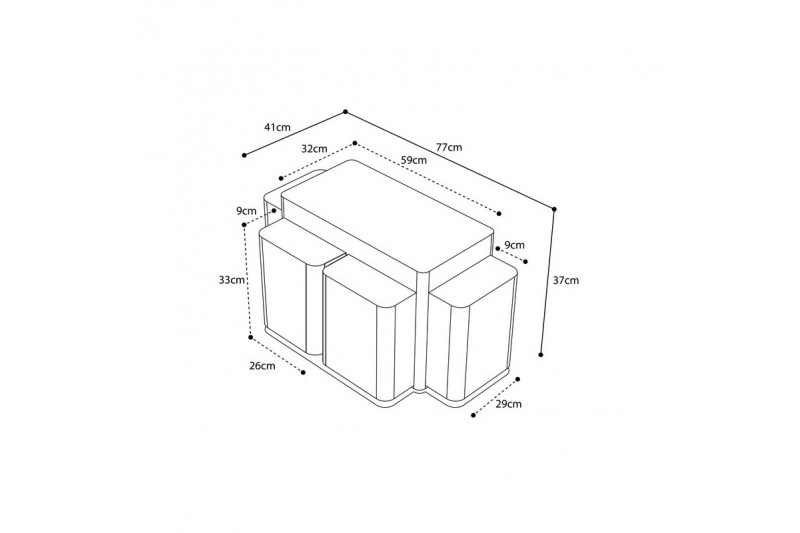 Six internal rigid struts to maintain shape and support the tabletop/work surface