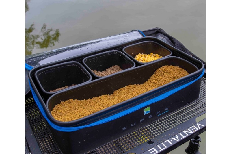 The Preston Supera EVA System is a uniquely designed bait storage system which allows you to carry a number of bait tubs or small items of tackle securely to your peg...