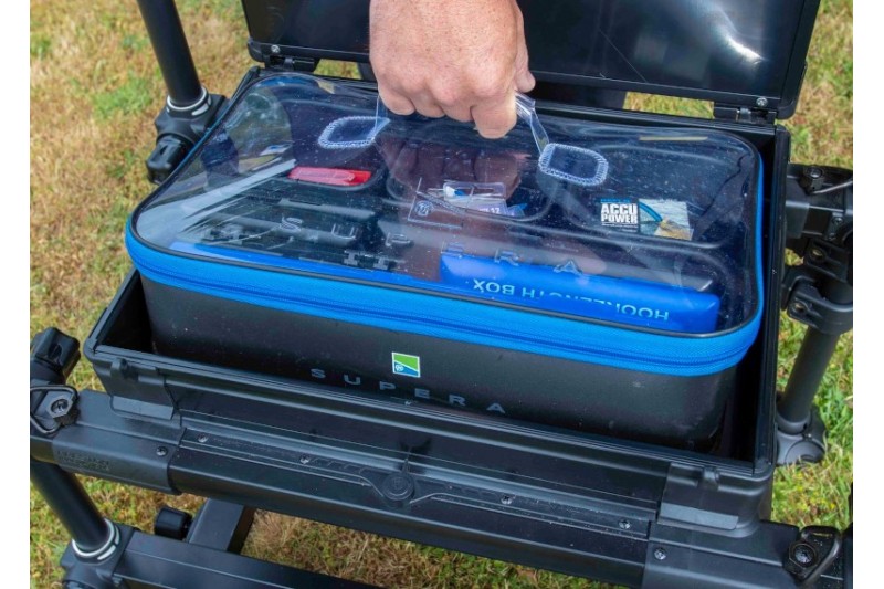 The Preston Supera EVA System is a uniquely designed bait storage system which allows you to carry a number of bait tubs or small items of tackle securely to your peg. Manufactured from a Strong, durable and 100% waterproof EVA material, this system also features a clear plastic lid with a zip for easy access. Designed to fit into the base of the inception Seat box perfectly..