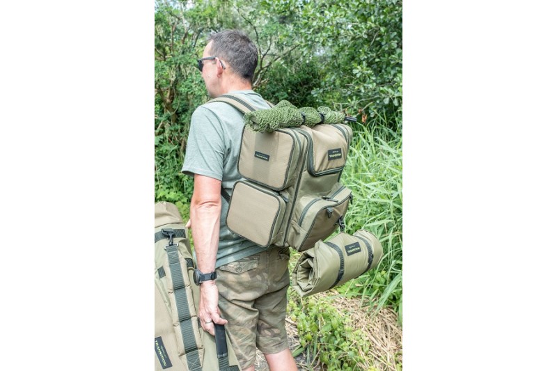 The Korum Transition Rucksack offers a high-capacity bag that’s been shaped to offer maximum functionality and comfort on those longer walks. The lid is designed to make it easier than ever to reach down into the main compartment, whilst three ITM and Transition compatible outer pockets give you easy access to your other gear. There are two velcro loops on the top of the bag to house things like folding nets and banksticks, D loops designed for carabiner attachments, plus our new Transition holster, which works in conjunction with all new Transition unhooking mats.