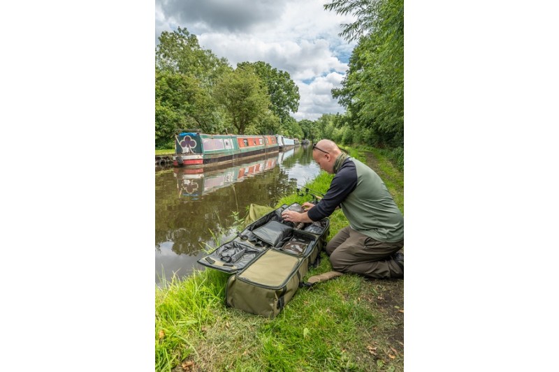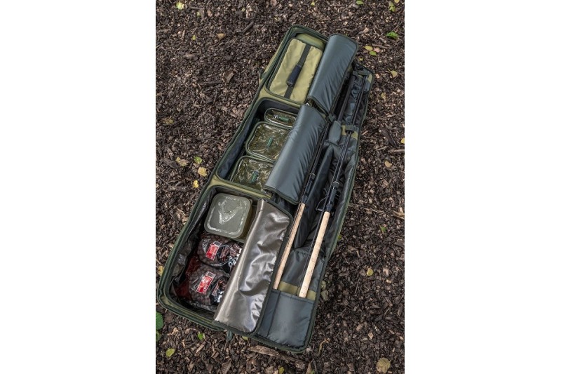 The Korum Transition Opportunist Foldall is for the short rod angler, this is the ultimate item of luggage. It's both a rod holdall and carryall, giving you three compartments for your tackle, along with total protection for two rods, landing net handle and even an outer pocket for your banksticks, brollies and nets. Of the three tackle compartments, one is a cool bag compartment for bait. The bag can be perfectly balanced due to its adjustable padded shoulder strap.