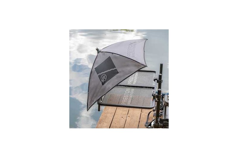 The Preston Offbox Grey Bait Brolly is a must have product for keeping your bait safe from driving rain and shaded from the beating sun. Having the very best bait can be the difference between winning and losing, the Offbox Grey Bait Brolly allows you to do this with ease. Supplied with a bracket that has been designed specifically to fit onto many existing Preston side trays, the bait brolly can be positioned exactly where you need it. The bait brolly features a tilt mechanism and the central bar can be completely screwed out and placed in a 45degree position.