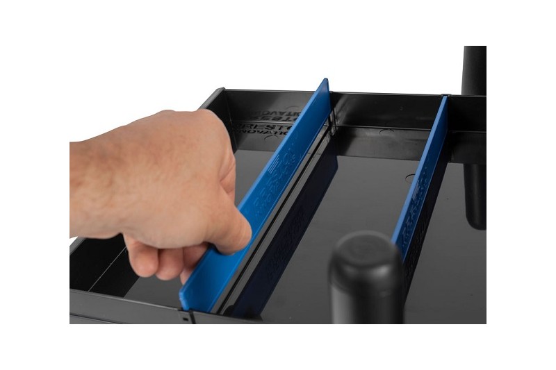 Built on a super strong and sleek looking frame that’s available in either white or graphite, the Inception station has an abundance of storage space. The deep compartmented side drawer unit is perfect for accessories while the deep side draw with removable dividers can be used for hooklength boxes, pole winders or any larger accessories. There is an empty shallow tray situated between the draws and the pole seat which is again perfect for storing pole rigs.