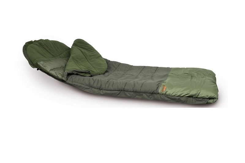 It has zip baffles inside and out to reduce draft on the zips, it also has elasticated hood top and bottom to attach the sleeping bag to the bedchair. The Evo TS bag has 100% virgin 7 micro porehollow fibre filling.
